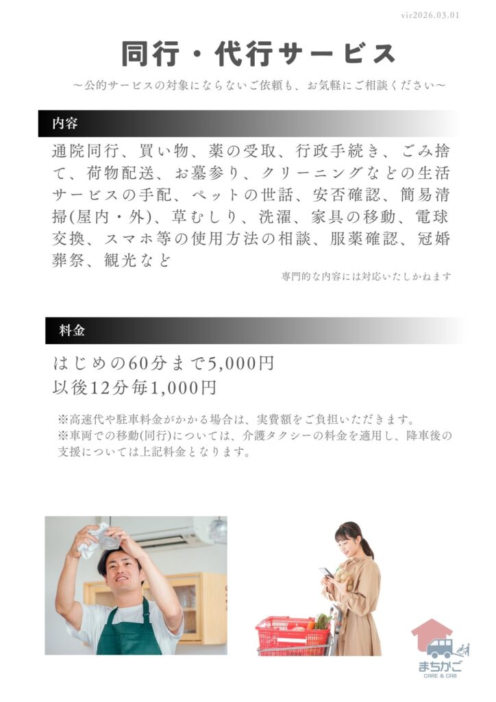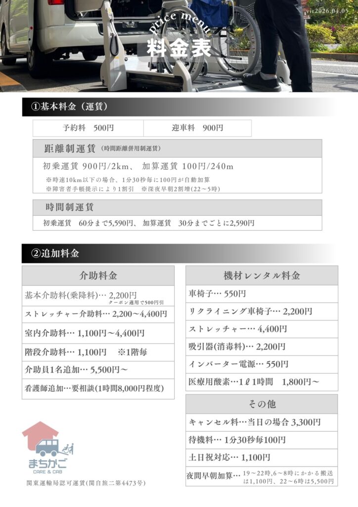 先にお知らせいたしました、介護タクシー料金の改定の変更日が以下の通り決まりましたので、お知らせいたします。